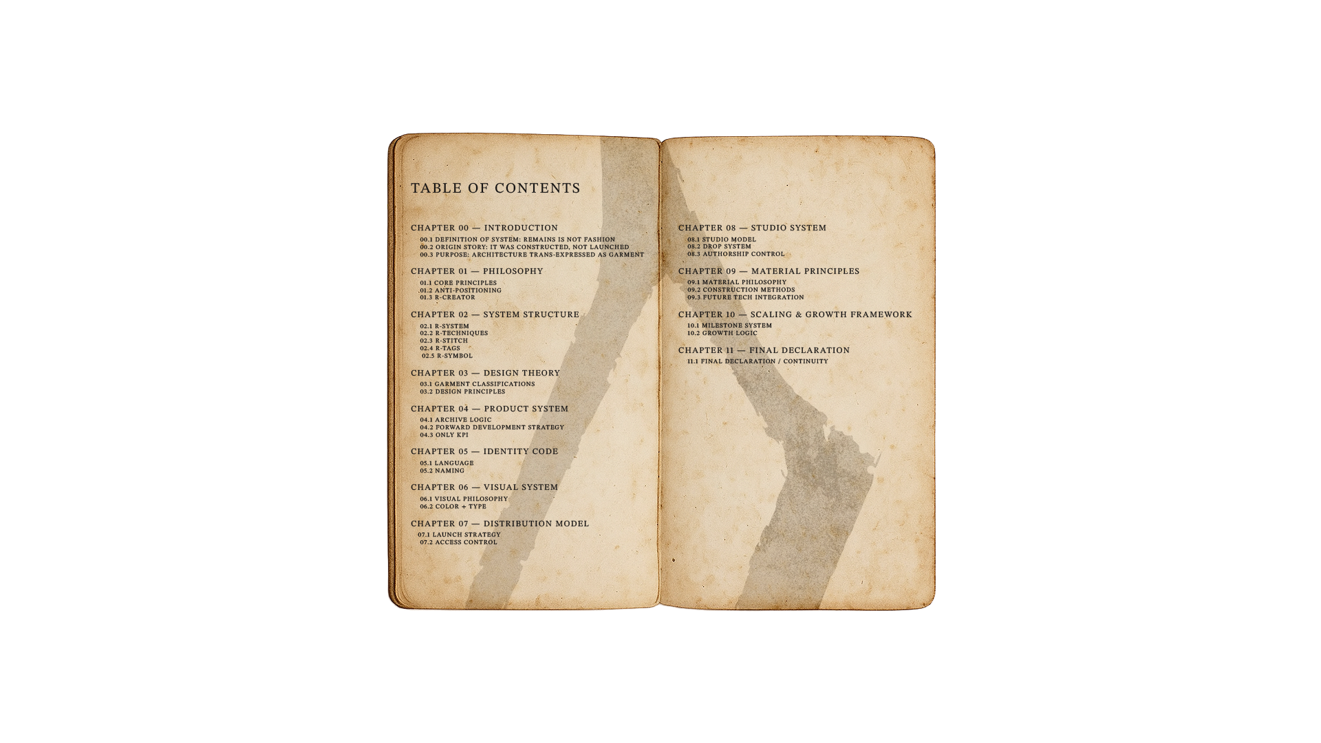 Before garments existed, before production, before the mark itself stabilized, early drafts of the system referenced an unnamed cycle - an architectural loop of construction, erosion, and persistence.